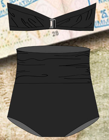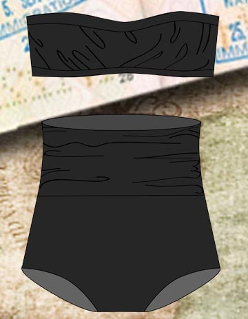 A. Cannes bandeau top and high-waisted, vintage-styled, full-coverage bottom.