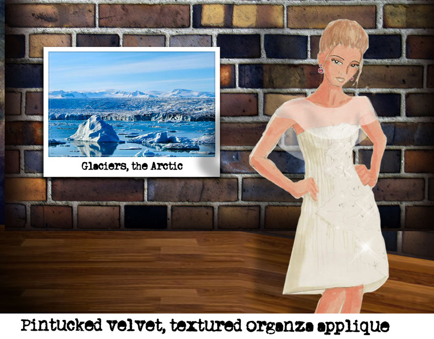 - Velvet and rhinestone crafted to mimic glacial freeze