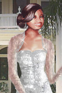 Luxurious, billowing silk chiffon gown features a dramatic open back. Beaded to match her bridal jewelry!
