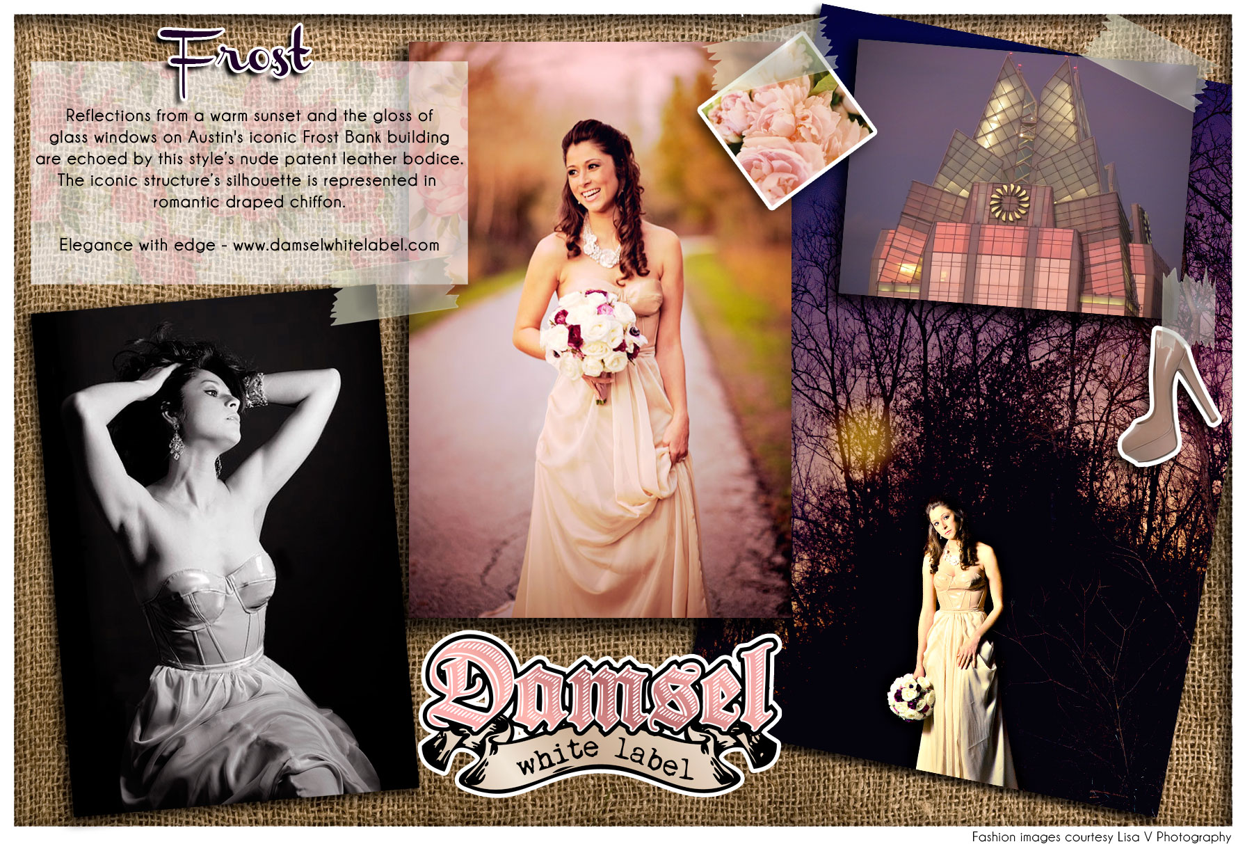 This collection is fully customizable. Necklines may be changed, fabrics substituted, and hem length changed.